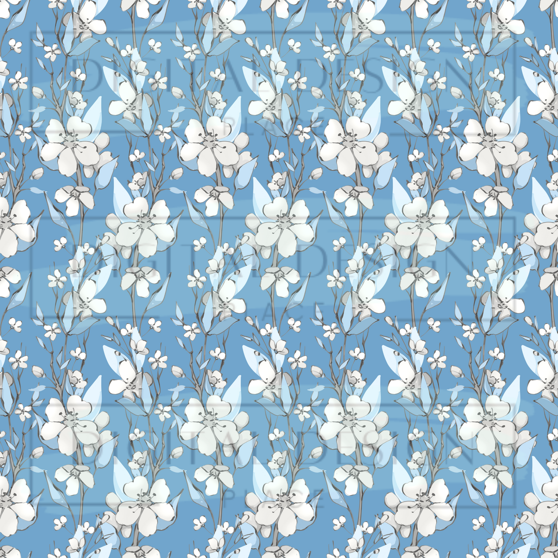 Blue White Floral VinylV939