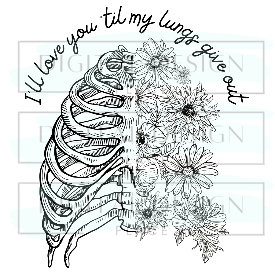 I'll love you 'til my lungs give out. Grey and Black Ribs, Flowers and Font