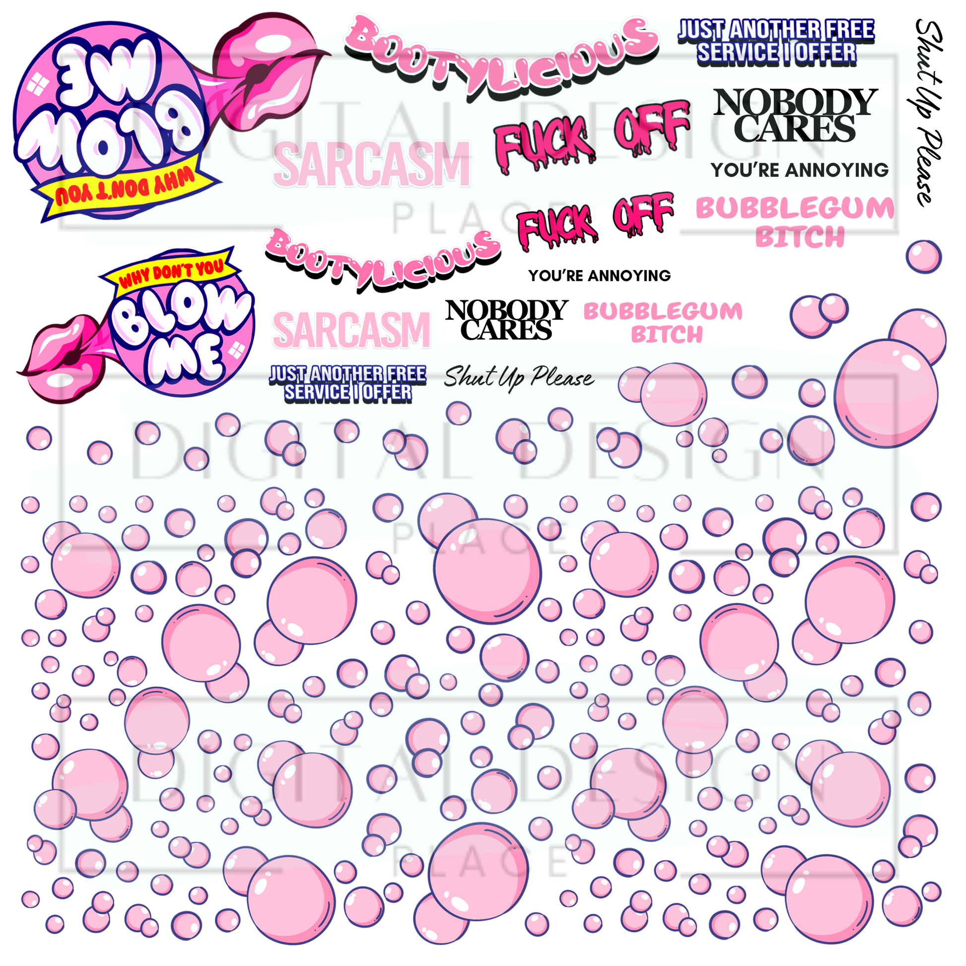Printed on Clear Vinyl. Elements for themed craft project. Sizes vary.