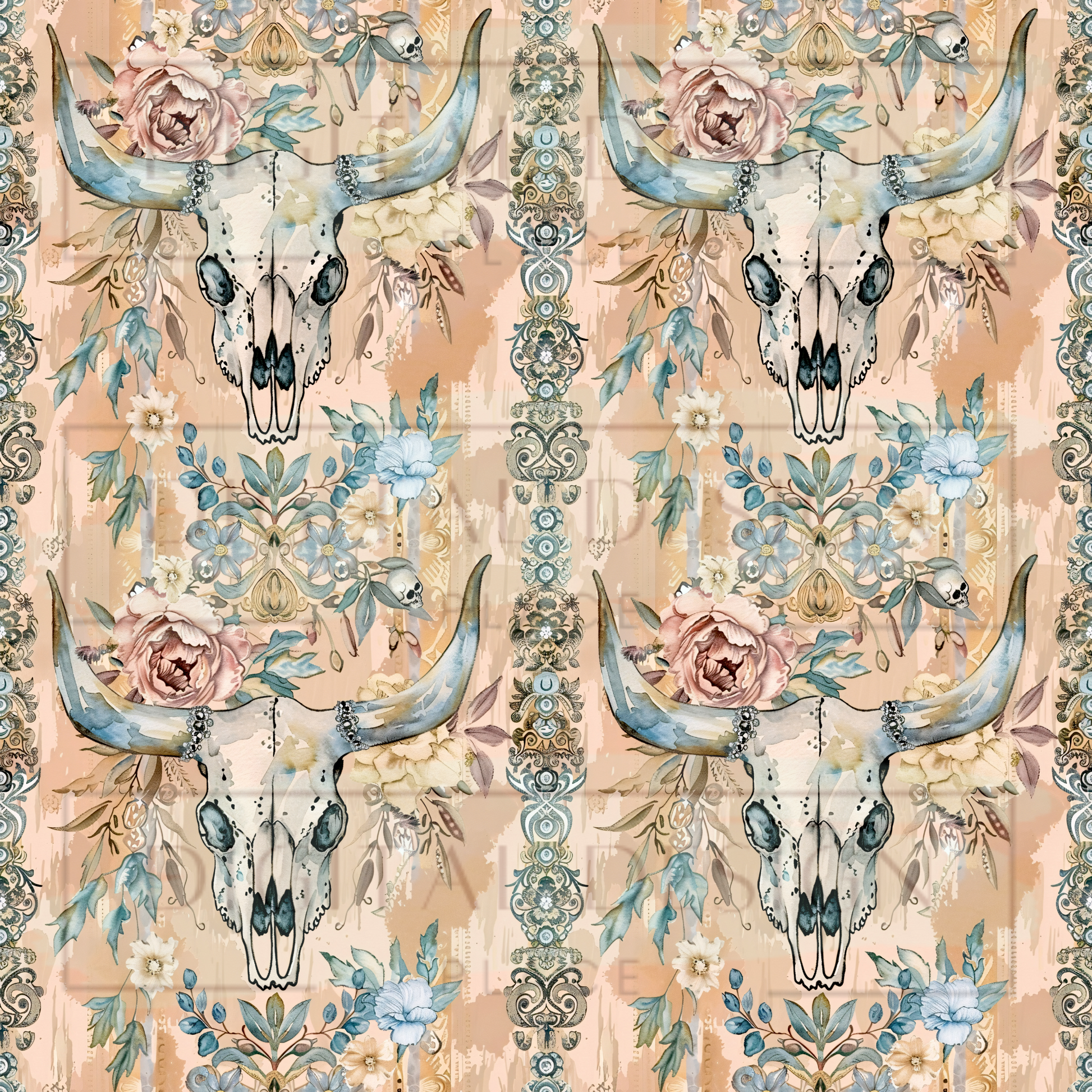 Floral Bull Skull VinylV1122