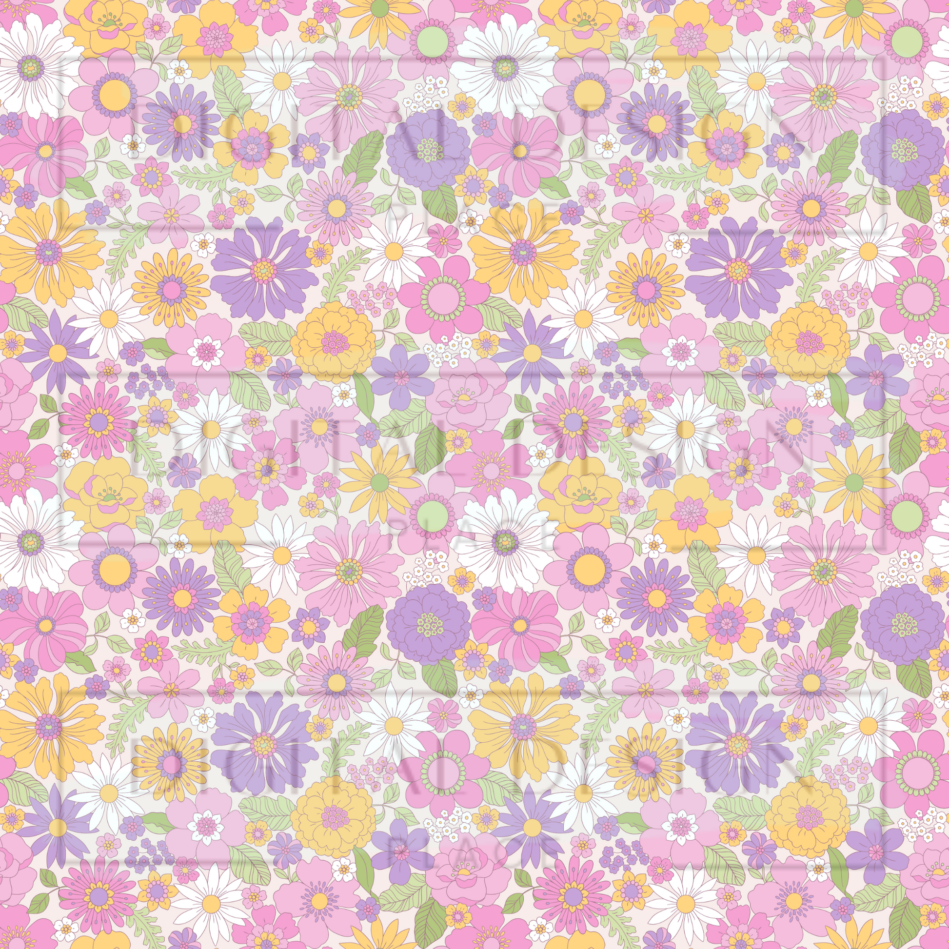 Purple/Yellow Retro Florals VinylV1234